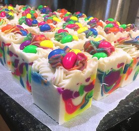 A selection of customer creations using EazyColours assessments and ingredients including water-solubles, neons, glitters